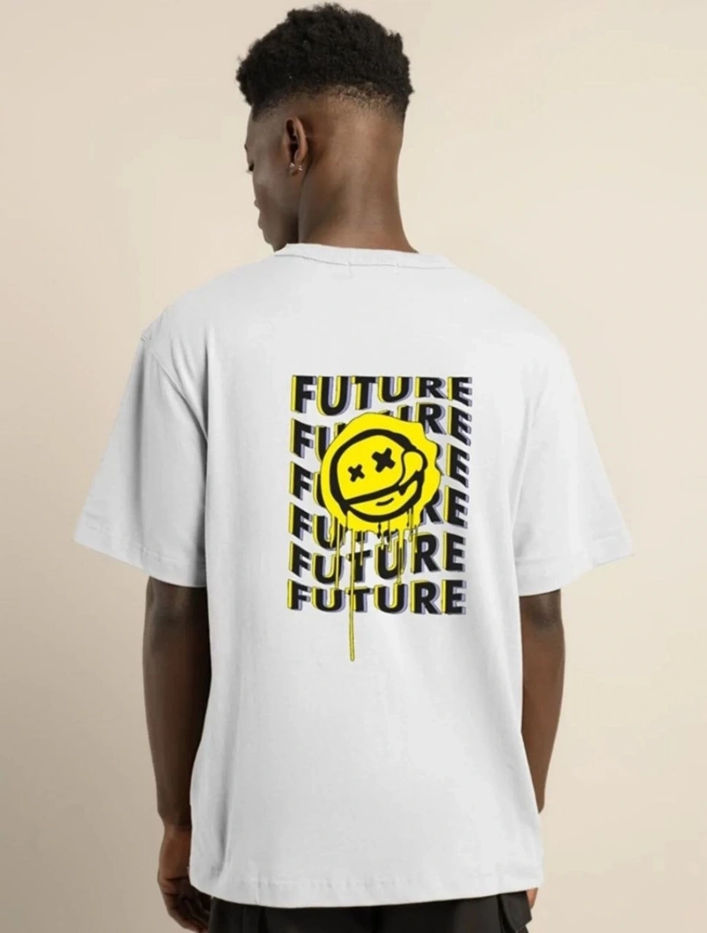 Benzersiz Sırt Baskılı Erkek Sokak Stili Bol Tişört - Nefes Alabilir Polyester, Makinede Yıkanabilir - Siyah