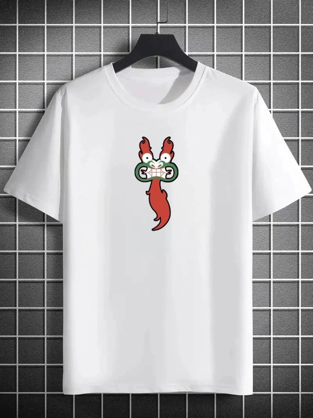 Eşsiz Baskı Tasarımlı Şık Büyük Beden Erkek Tişörtü - Rahat Polyester, Makinede Yıkanabilir, Yuvarlak Yaka - Her Mevsim İçin Mükemmel - Beyaz