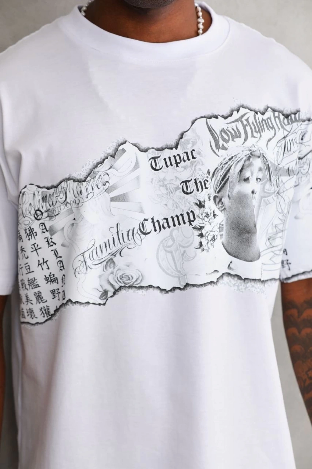 Eşsiz Baskı Tasarımlı Şık Büyük Beden Erkek Tişörtü - Rahat Polyester, Makinede Yıkanabilir, Yuvarlak Yaka - Her Mevsim İçin Mükemmel - Beyaz