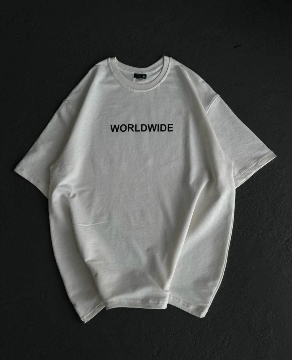 DAY ONE BASKILI OVERSİZE BİSİKLET YAKA T-SHİRT - BEYAZ
