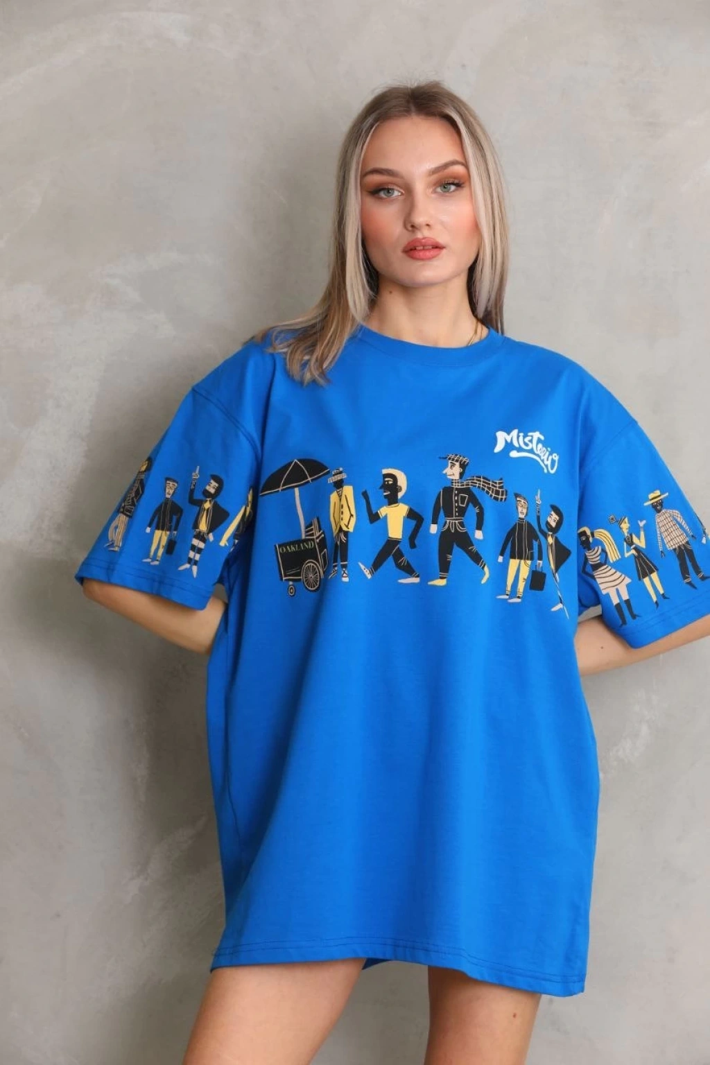 KADIN OVERSİZE BASKILI TİŞÖRT – GOLF GTI RETRO ARABA DESENLİ, ÖN & ARKA DİJİTAL BASKI, SOKAK MODASI STİL - MİNT YEŞİLİ