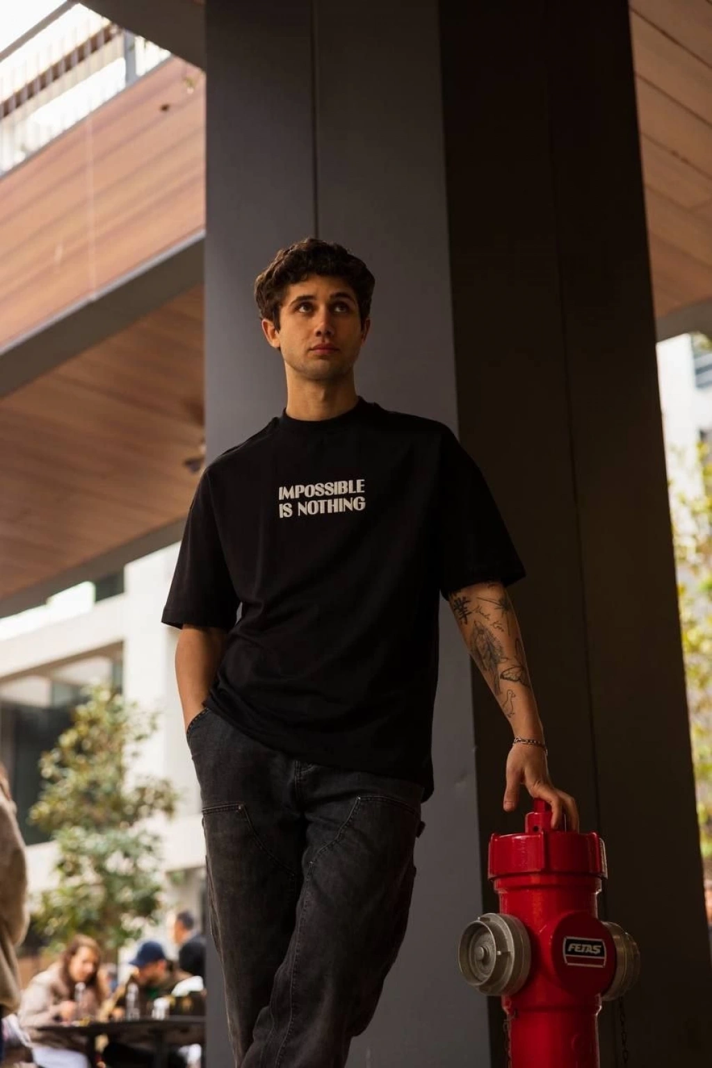 Benzersiz Sırt Baskılı Erkek Sokak Stili Bol Tişört - Nefes Alabilir Polyester, Makinede Yıkanabilir - Siyah