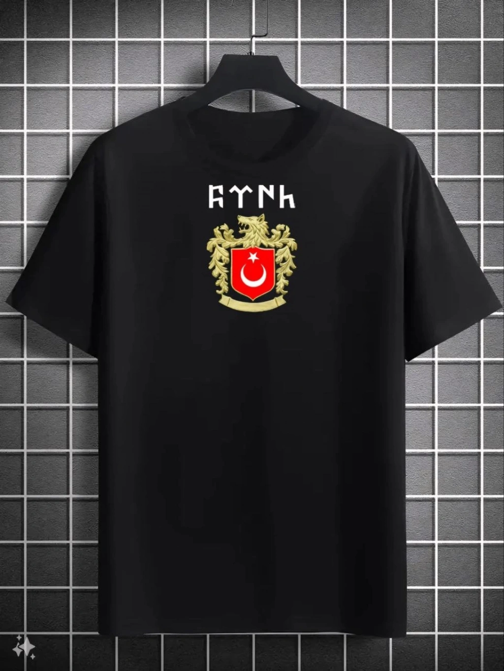 Eşsiz Baskı Tasarımlı Şık Büyük Beden Erkek Tişörtü - Rahat Polyester, Makinede Yıkanabilir, Yuvarlak Yaka - Her Mevsim İçin Mükemmel - Siyah