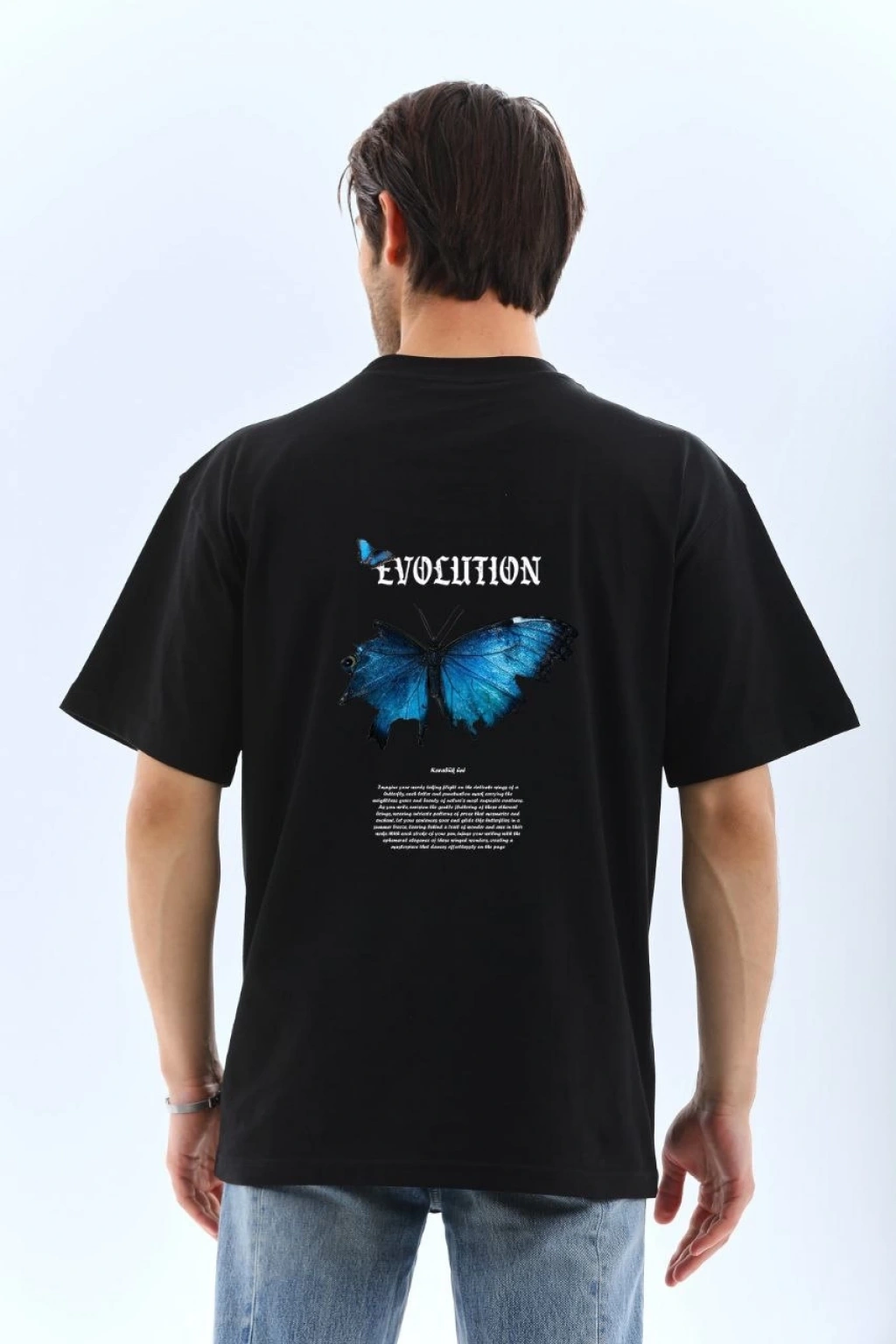 Benzersiz Sırt Baskılı Erkek Sokak Stili Bol Tişört - Nefes Alabilir Polyester, Makinede Yıkanabilir - Siyah