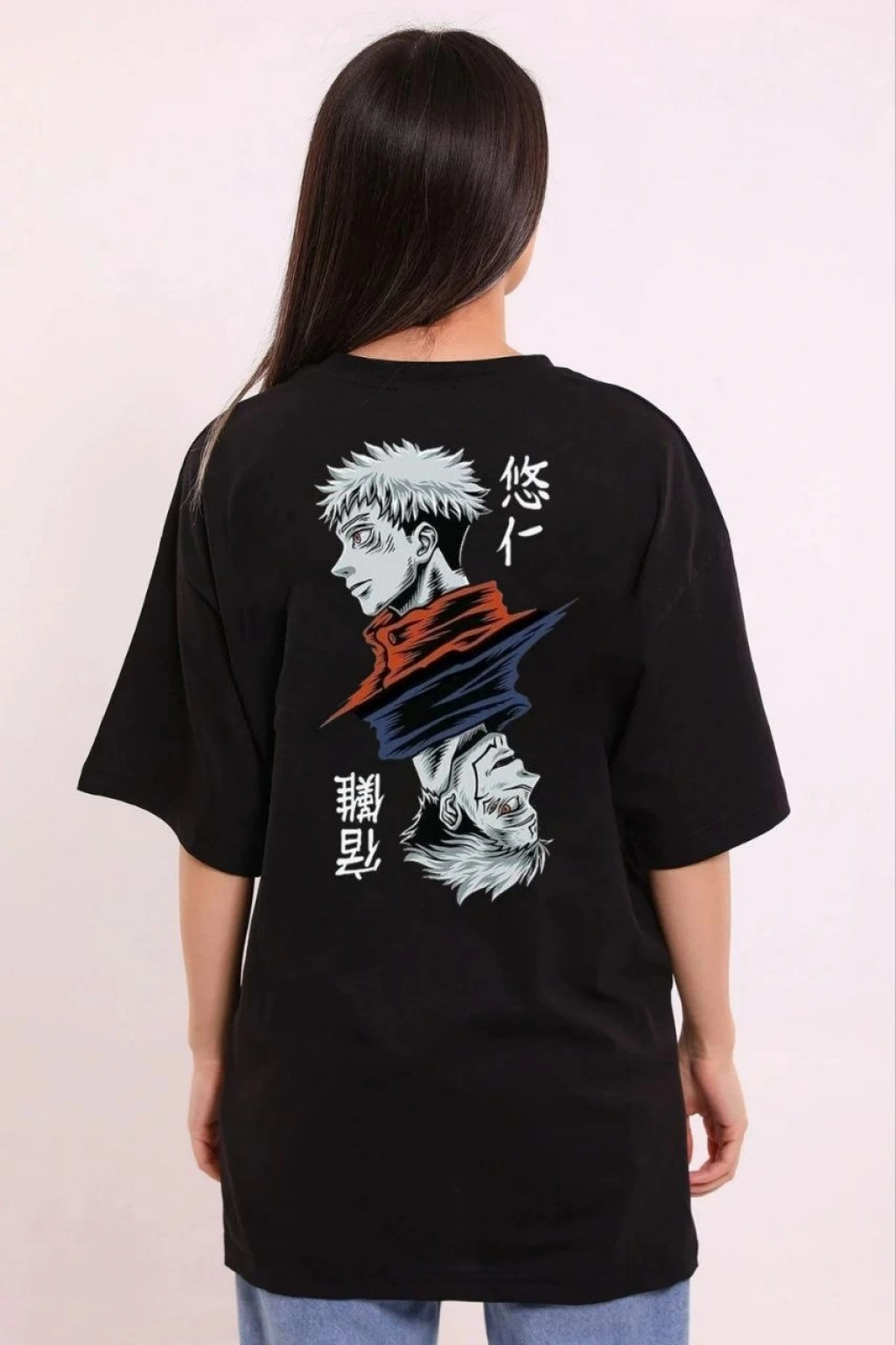 Unisex Bisiklet Yaka Baskılı Oversize T-Shirt - Beyaz