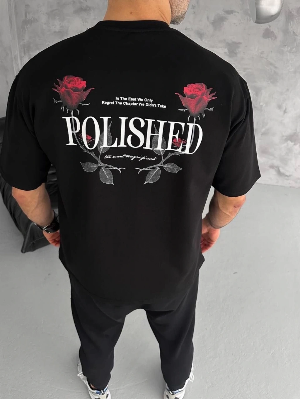 Erkek Pike Kumaş Düğmeli Yaka Battal Büyük Beden Günlük Kısa kol Tişört T-shirt - Siyah