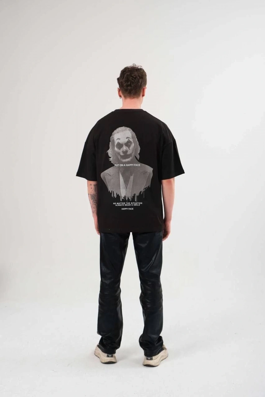 Benzersiz Sırt Baskılı Erkek Sokak Stili Bol Tişört - Nefes Alabilir Polyester, Makinede Yıkanabilir - Siyah