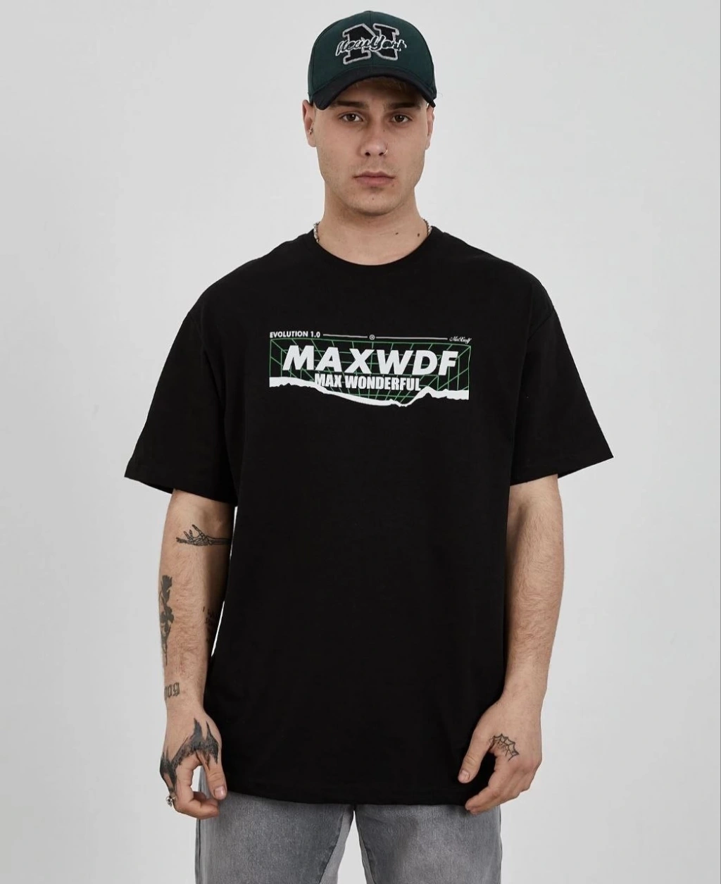 Benzersiz Sırt Baskılı Erkek Sokak Stili Bol Tişört - Nefes Alabilir Polyester, Makinede Yıkanabilir - Siyah