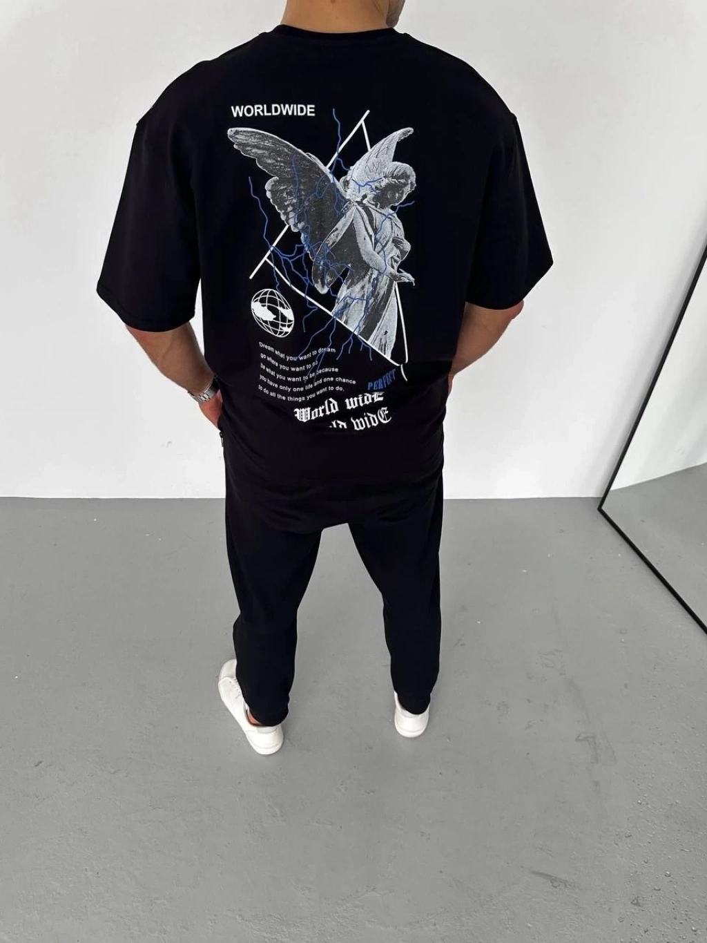 Erkek Sırt Baskılı Oversize T-Shirt - Beyaz