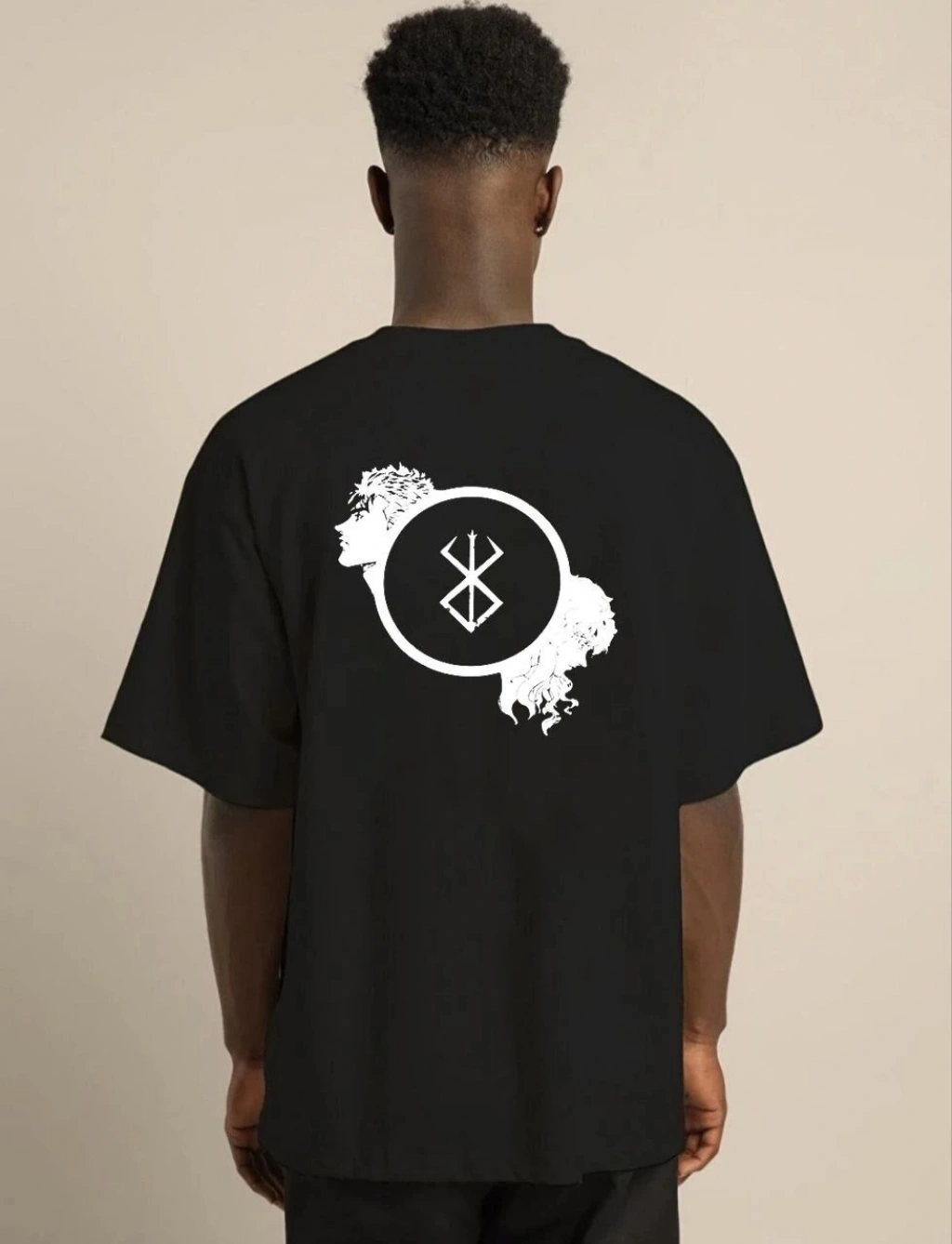 Benzersiz Sırt Baskılı Erkek Sokak Stili Bol Tişört - Nefes Alabilir Polyester, Makinede Yıkanabilir - Siyah