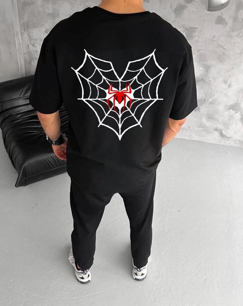 Benzersiz Sırt Baskılı Erkek Sokak Stili Bol Tişört - Nefes Alabilir Polyester, Makinede Yıkanabilir - Siyah