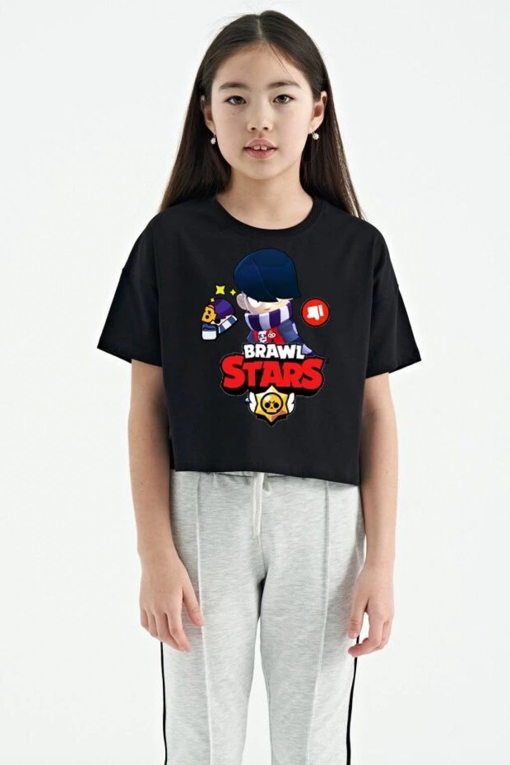 Unisex Bisiklet Yaka Kısa Kol Baskılı Çocuk T-shirt - Siyah