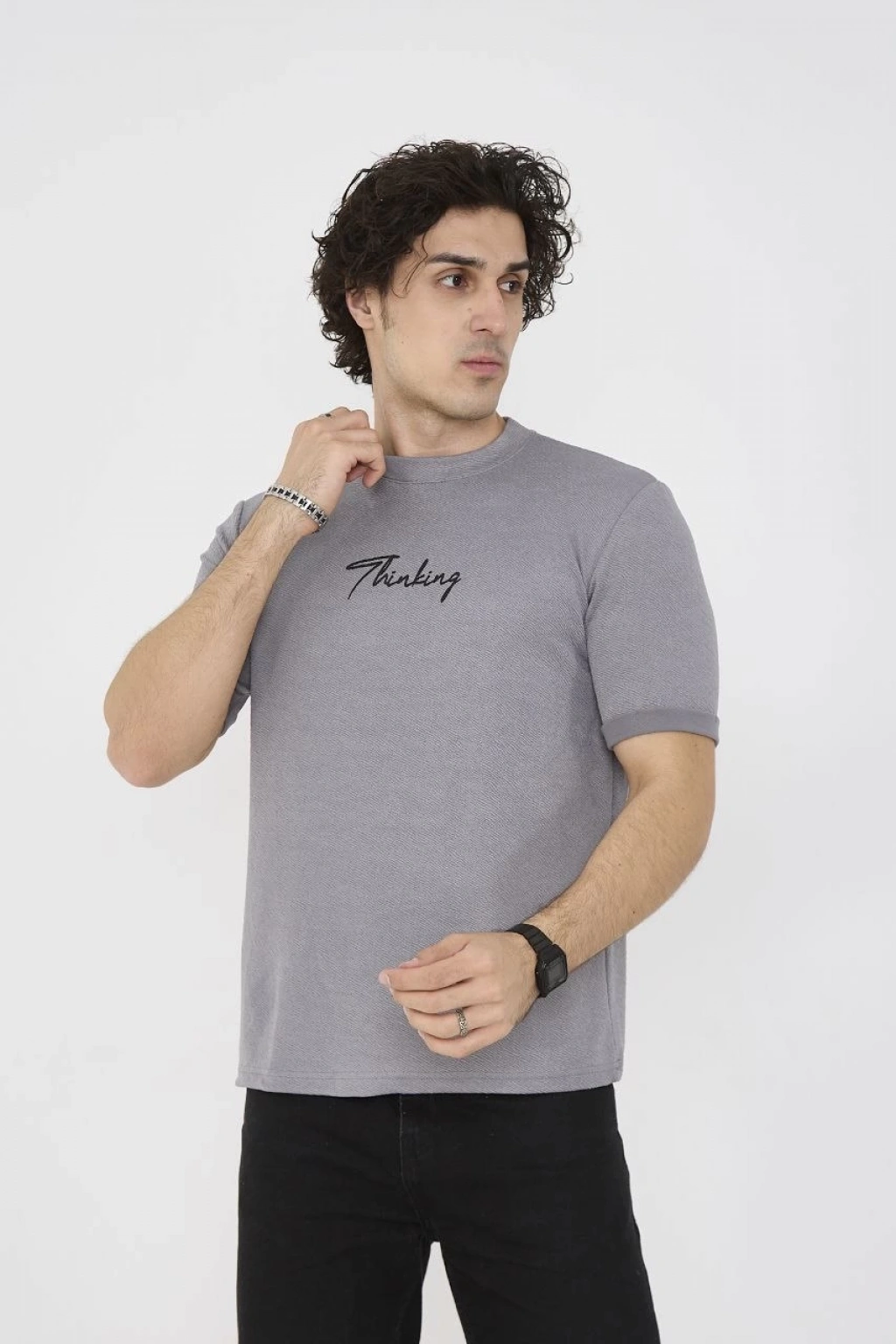 Erkek Oversize Baskılı Tişört – Golf GTI Retro Araba Desenli, Ön & Arka Dijital Baskı, Sokak Modası Stil - Gri