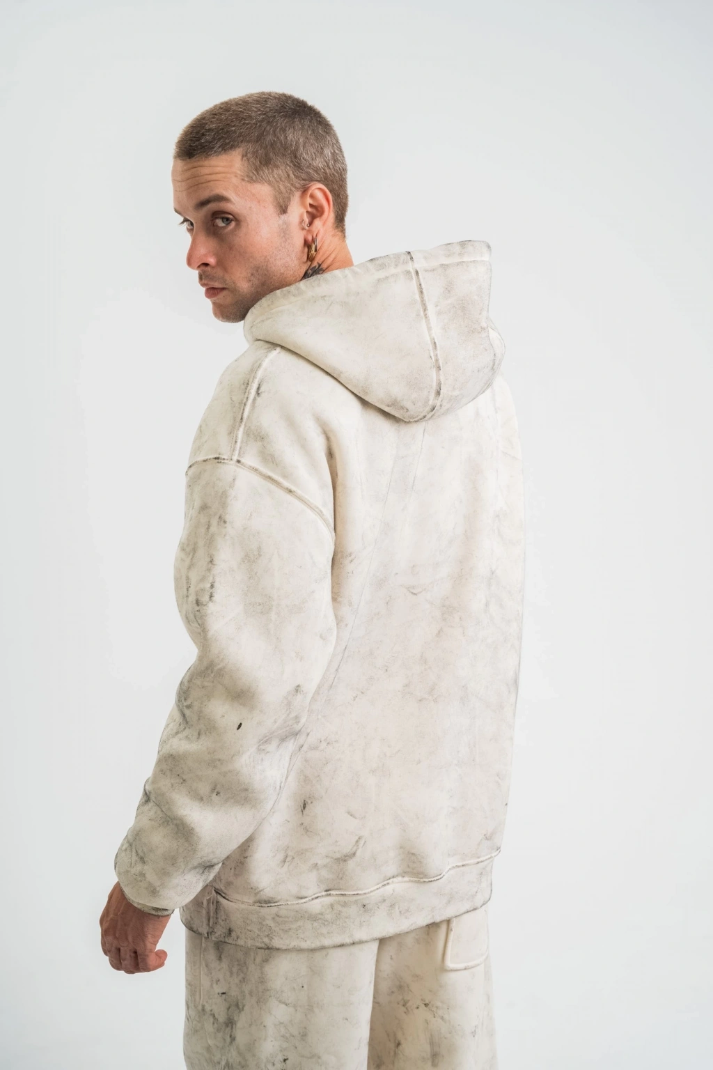 Oversize Üç İplik Kapüşonlu SweatShirt - Beyaz
