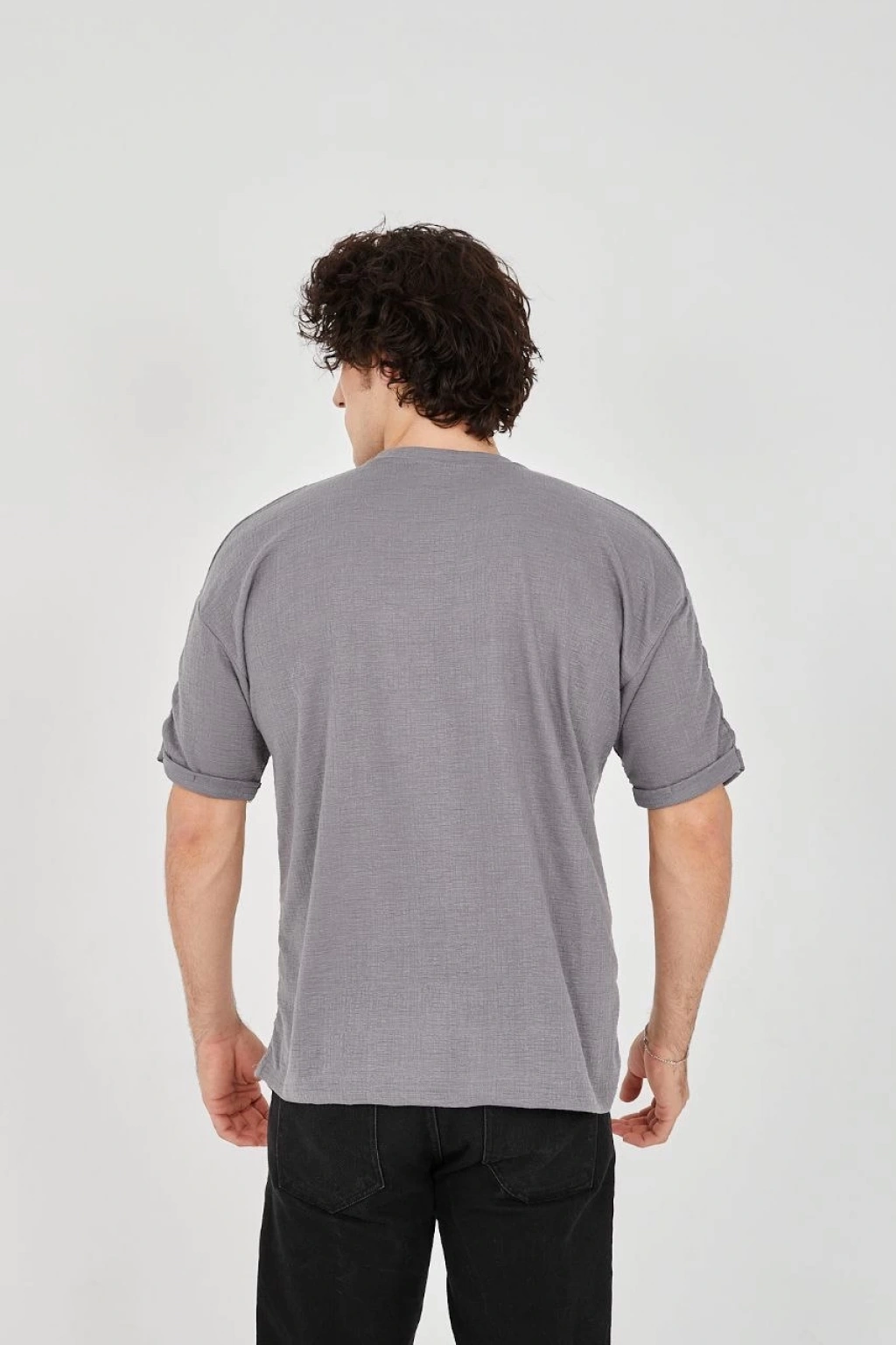 Erkek Oversize Baskılı Tişört – Golf GTI Retro Araba Desenli, Ön & Arka Dijital Baskı, Sokak Modası Stil - Gri