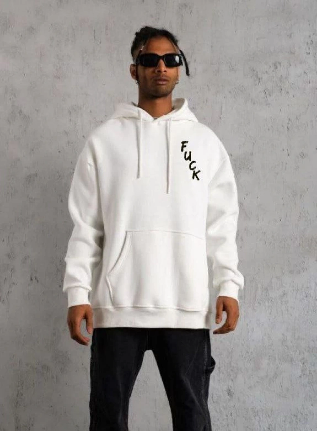 Oversize Üç İplik Kapüşonlu SweatShirt - Beyaz