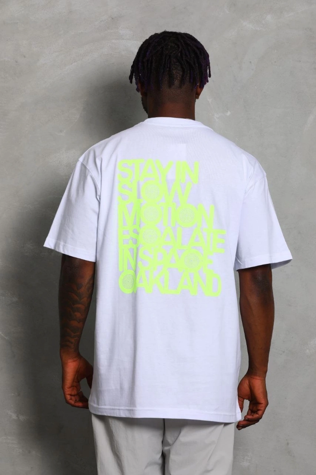 Unisex Oversize Baskılı Bisiklet Yaka T-Shirt - Beyaz