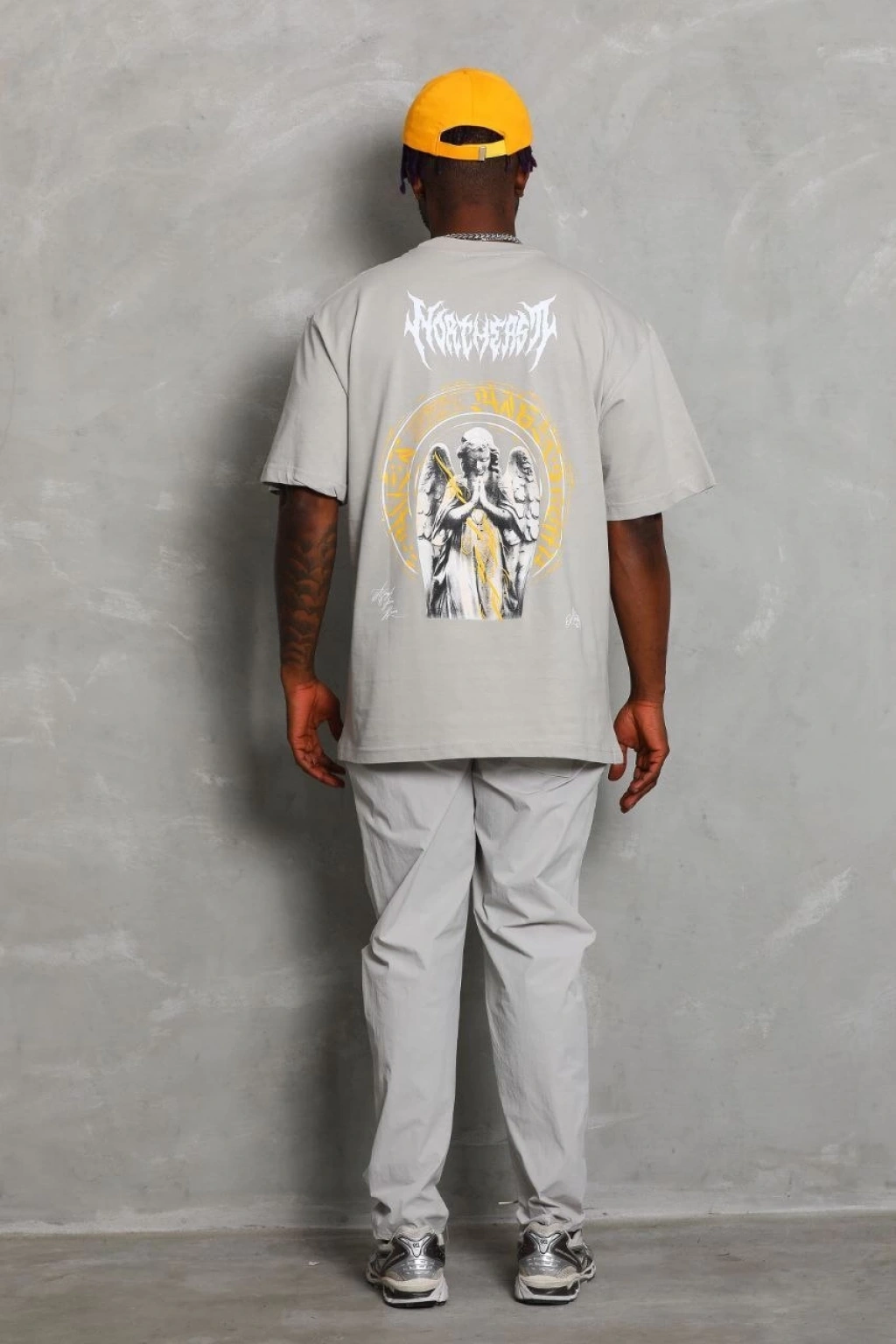 Erkek Oversize Baskılı Tişört – Golf GTI Retro Araba Desenli, Ön & Arka Dijital Baskı, Sokak Modası Stil - Gri