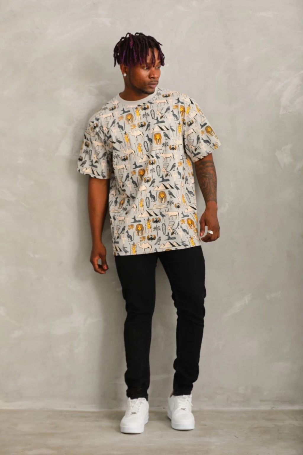 Erkek Oversize Baskılı Tişört – Golf GTI Retro Araba Desenli, Ön & Arka Dijital Baskı, Sokak Modası Stil - Gri