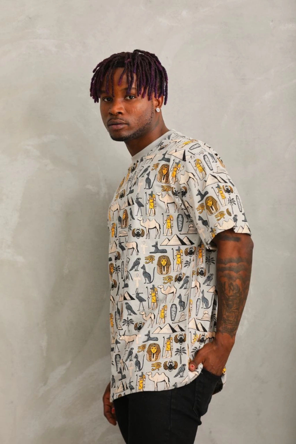 Benzersiz Sırt Baskılı Erkek Sokak Stili Bol Tişört - Nefes Alabilir Polyester, Makinede Yıkanabilir - Siyah