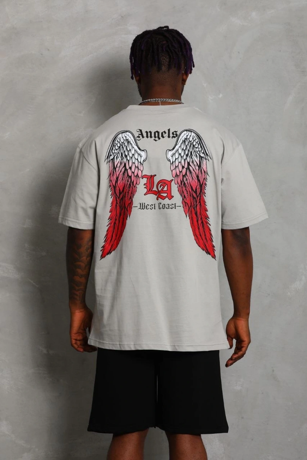 Erkek Sırt Baskılı Oversize T-Shirt - Beyaz