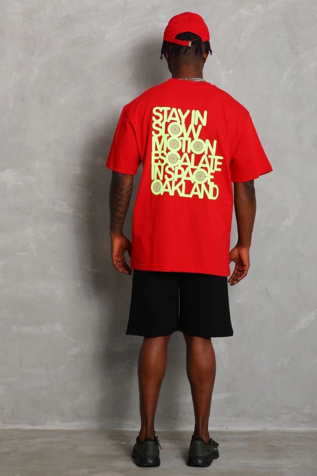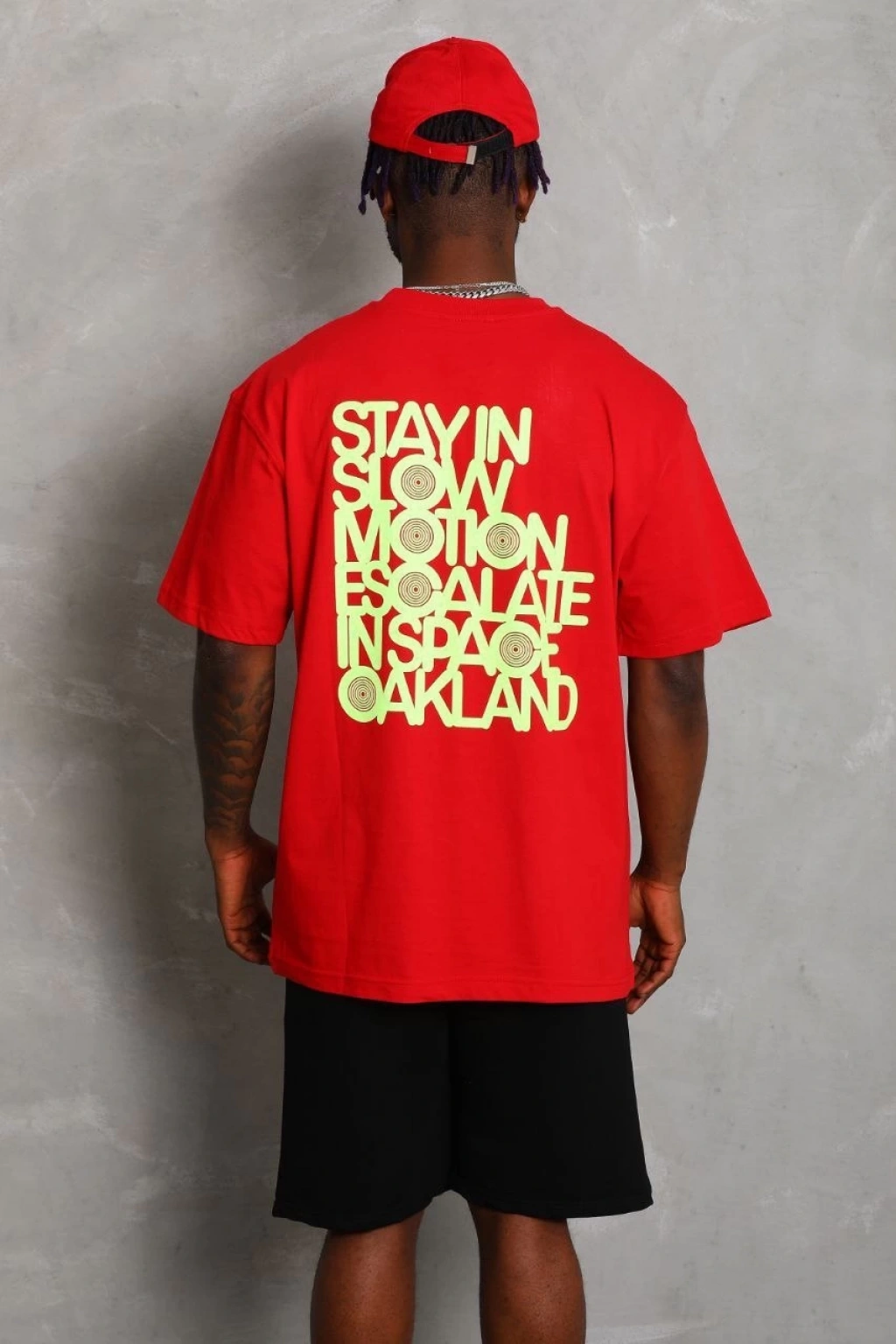 Unisex Oversize Baskılı Bisiklet Yaka T-Shirt - Kırmızı