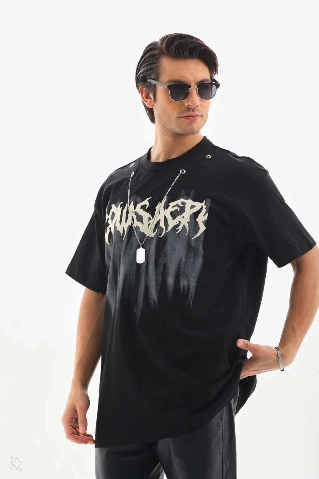 Unisex Oversize Kolye Dahil T-Shirt - Siyah