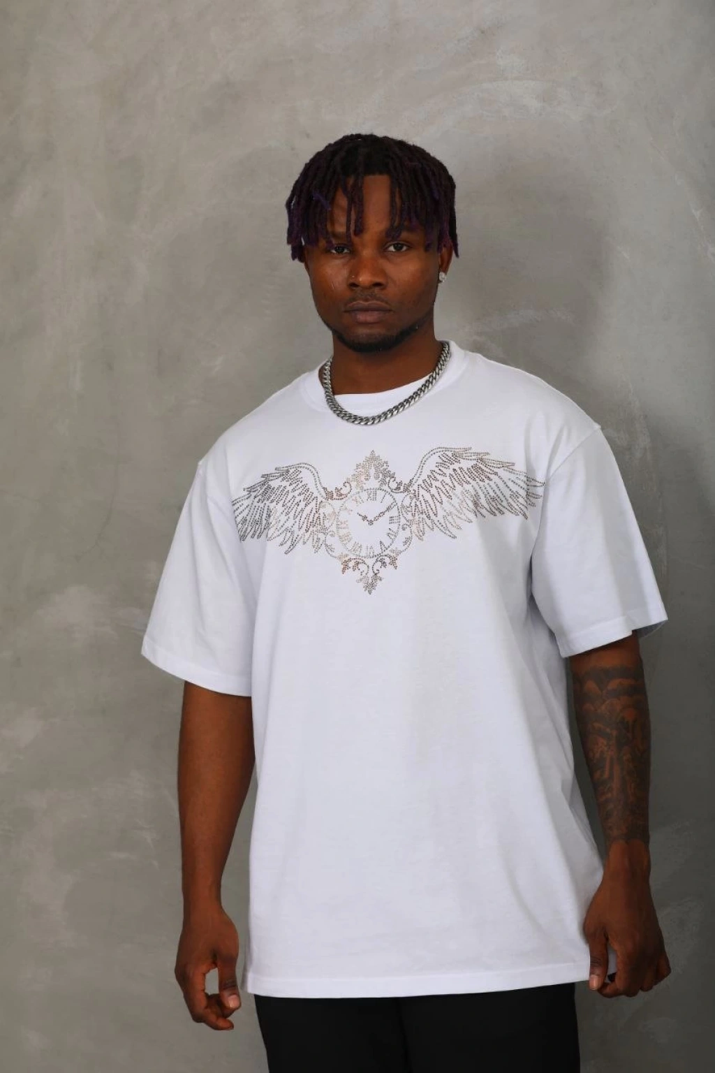 20/1 Penye Compack Ön Arka Ejder Baskılı Oversize Bisiklet Yaka T-shirt - Beyaz