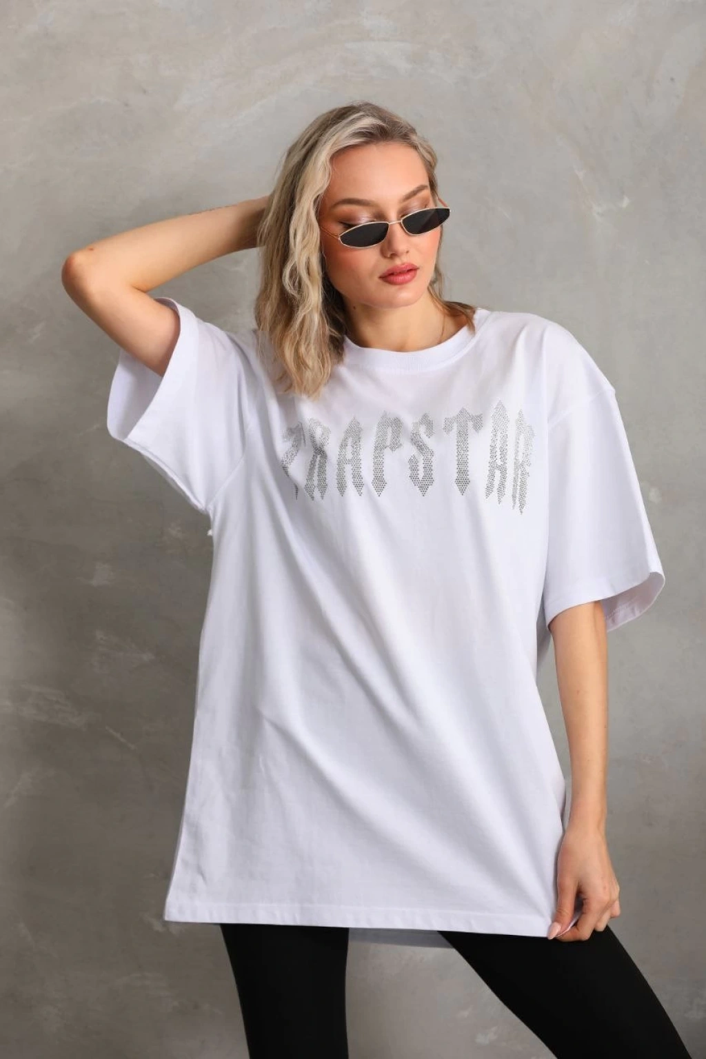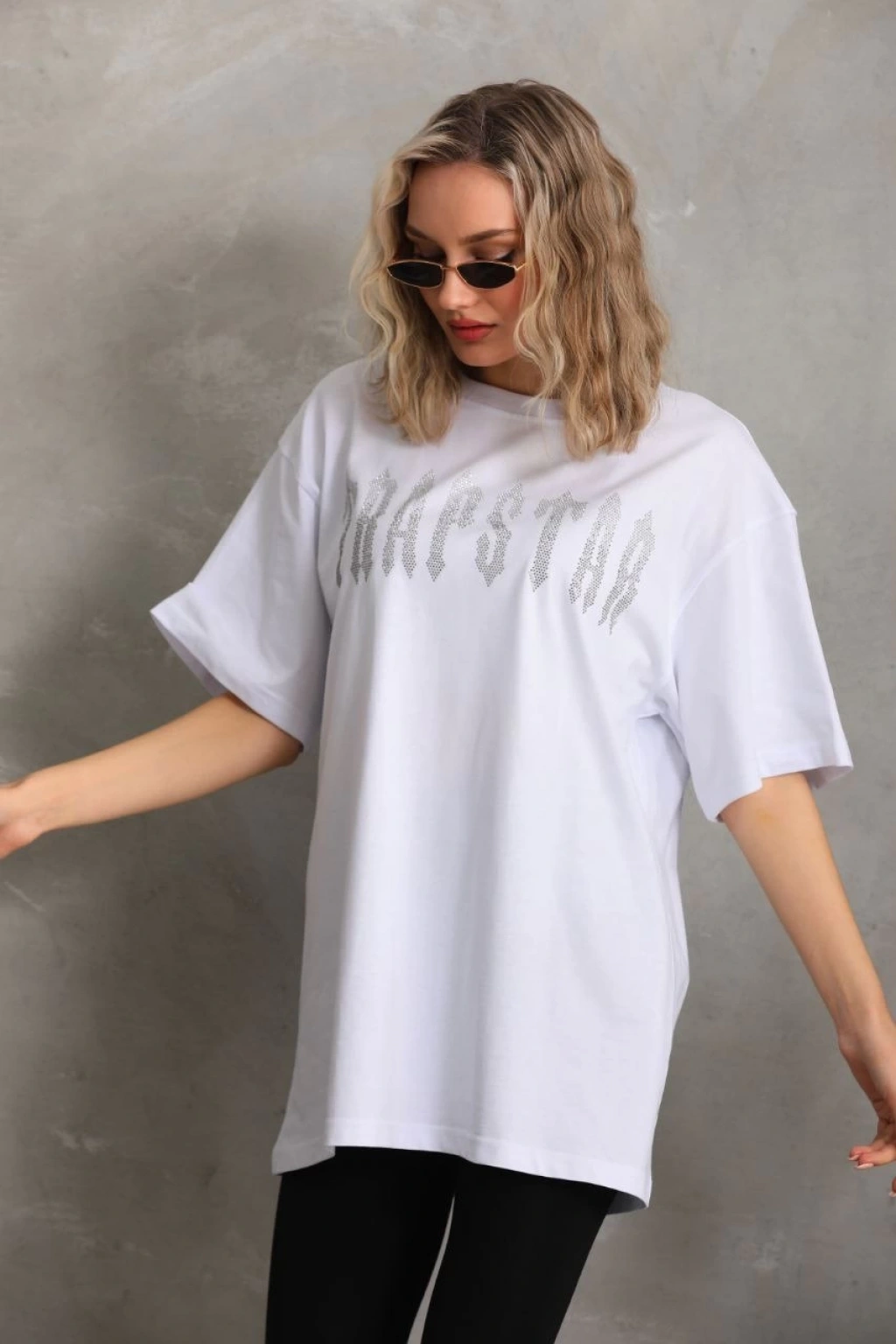 Unisex Taş Desenli Oversize T-Shirt - Beyaz
