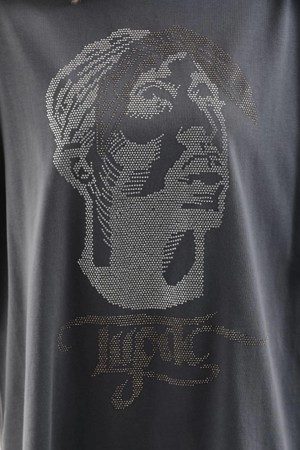Unisex Taş Desenli Oversize T-Shirt - Füme
