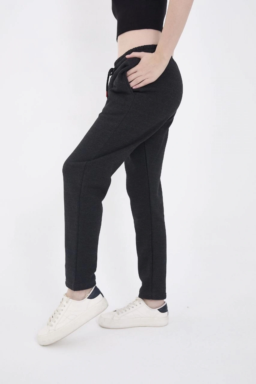 Praşut Kumaş Paça Cepli Baggy Eşofman - Antrasit