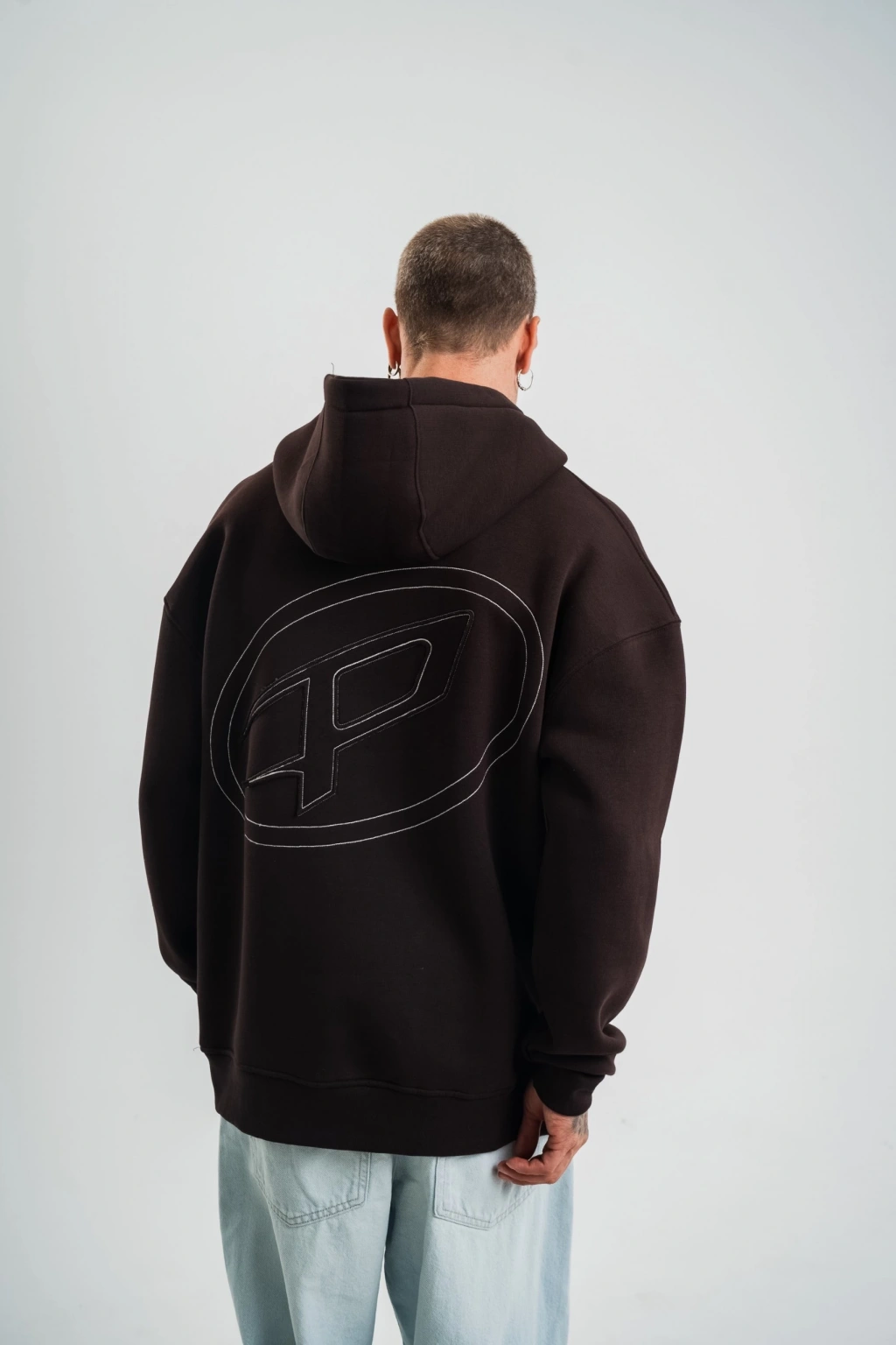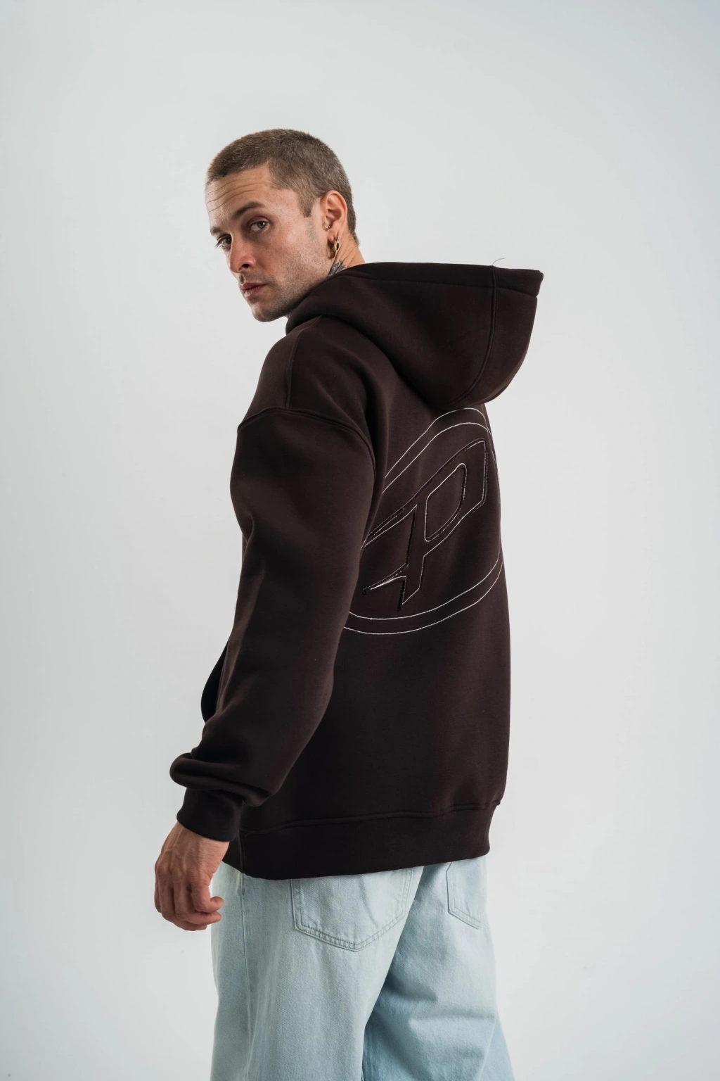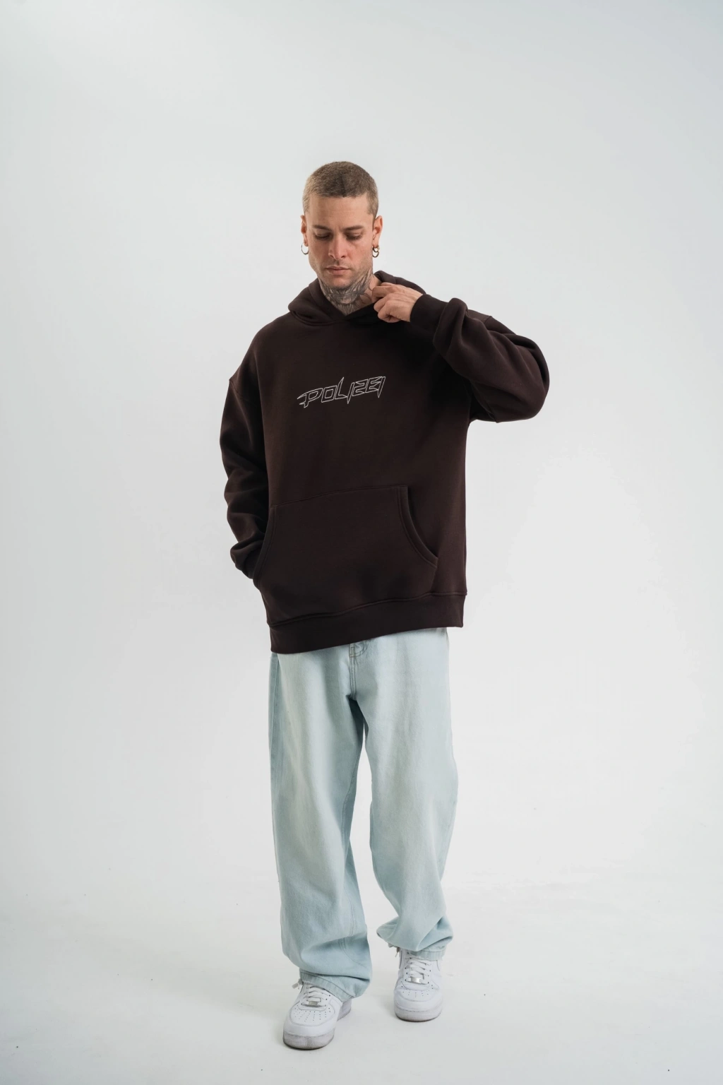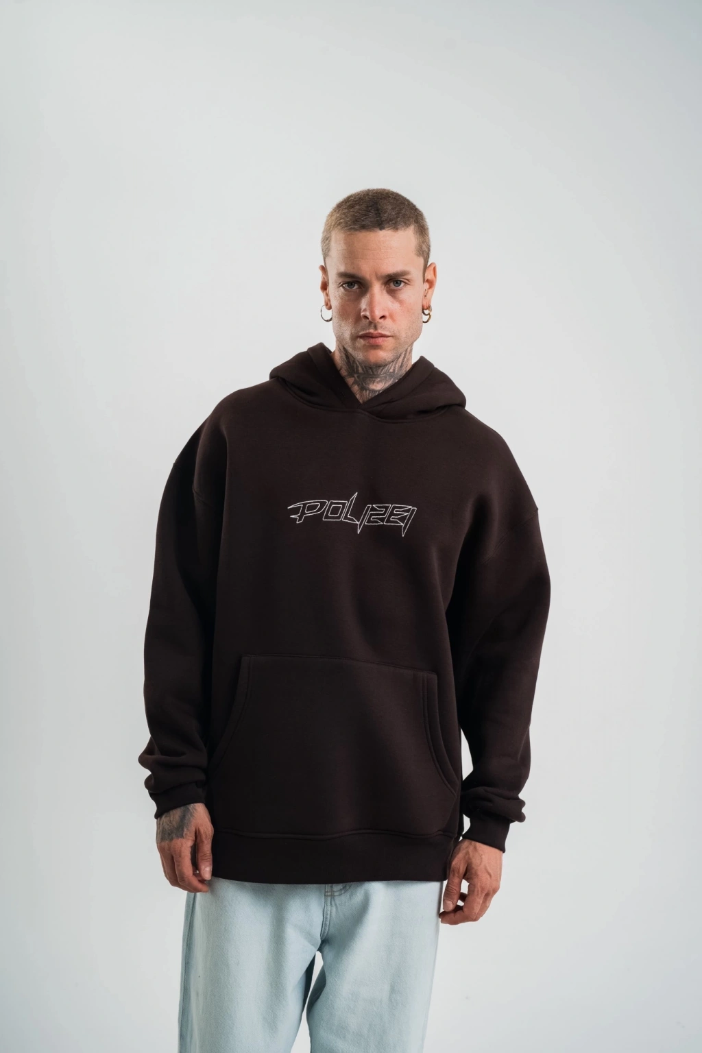 Erkek Oversize Üç İplik Kapüşonlu Sweatshirt – Siyah Sırt ve Ön Baskılı, Kanguru Cepli, Rahat Kalıp, İçi Pamuklu ModeL-Siyah