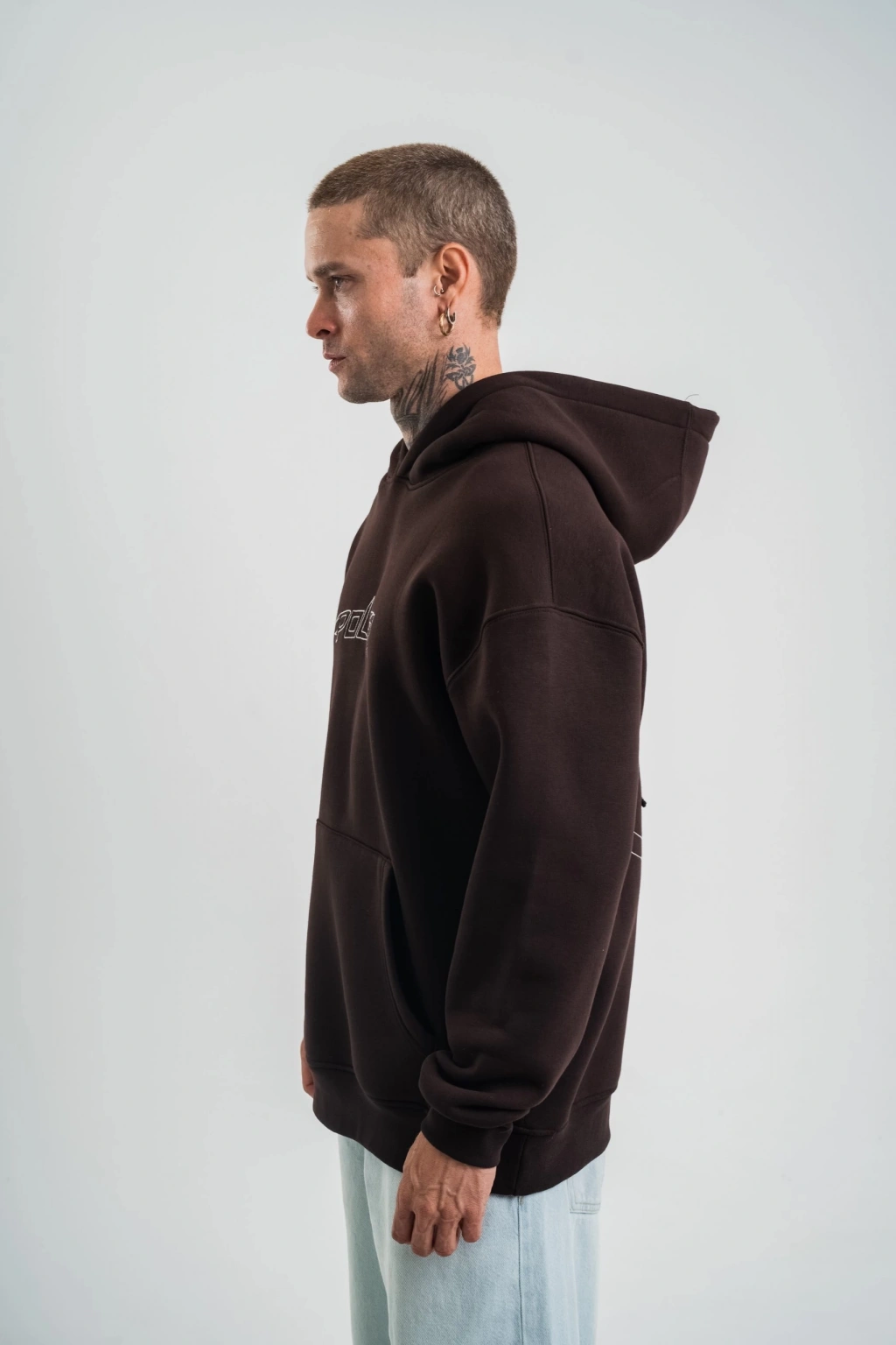Erkek Ovarsize Kapüşonlu Swetshirt Kanguru Çepli Cıtcıtlı 3 iplik Şardonlu Hoodie - Haki