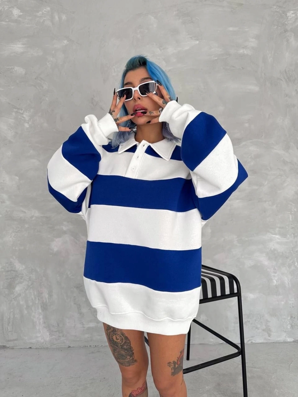 Kadın Üç İplik Dık Yaka Yarım Fermuarlı SweatShirt - Beyaz
