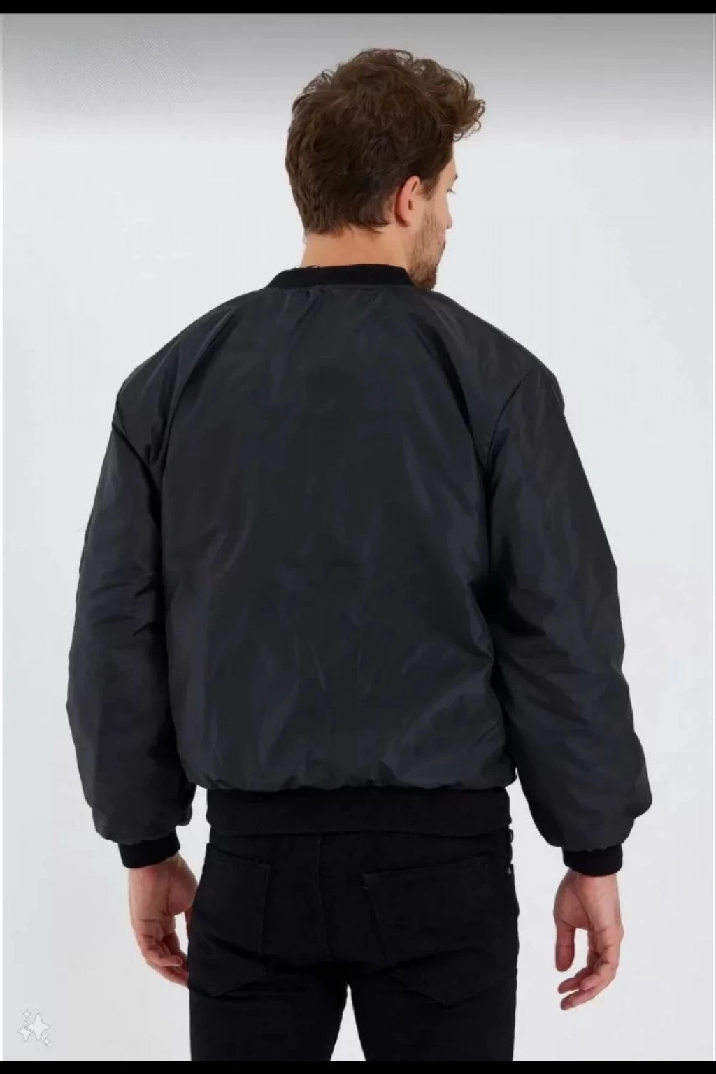 Erkek Siyah Bomber Mont – Fermuarlı, Cepli, Kapitone Astarlı Rahat Günlük Ceket Bahar & Kış Kullanıma Uygun - Siyah