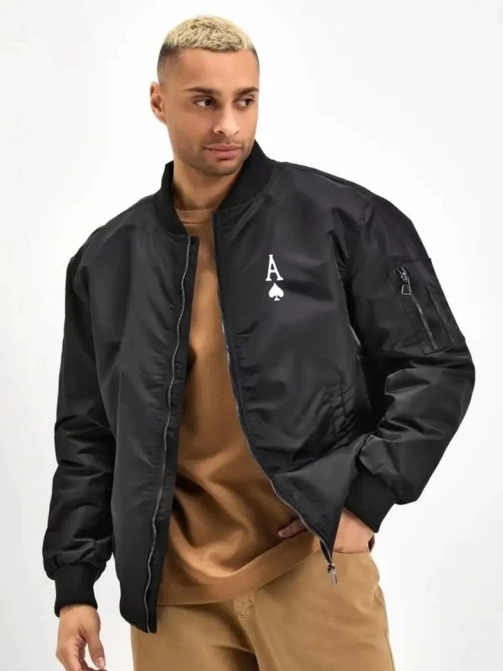 Siyah Parliament Bomber Mont – 46 Numara Detaylı, Fermuarlı, Cepli, Uzun Kollu, Spor ve Günlük Giyim İçin Rahat Unisex Mont - Siyah