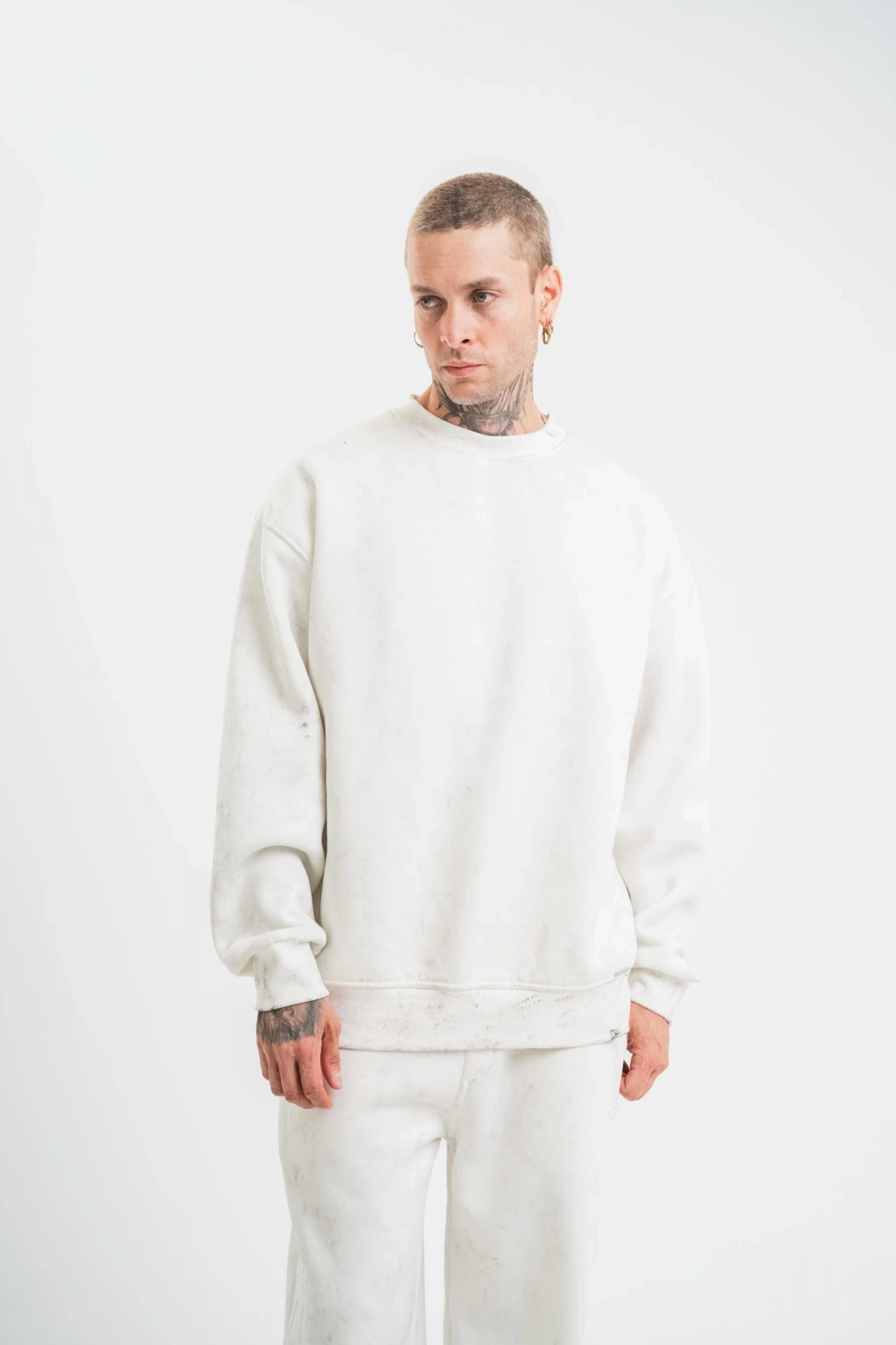 Unisex Bisiklet Yaka Özel Pis Dikişli Yıkamalı SweatShirt - Siyah