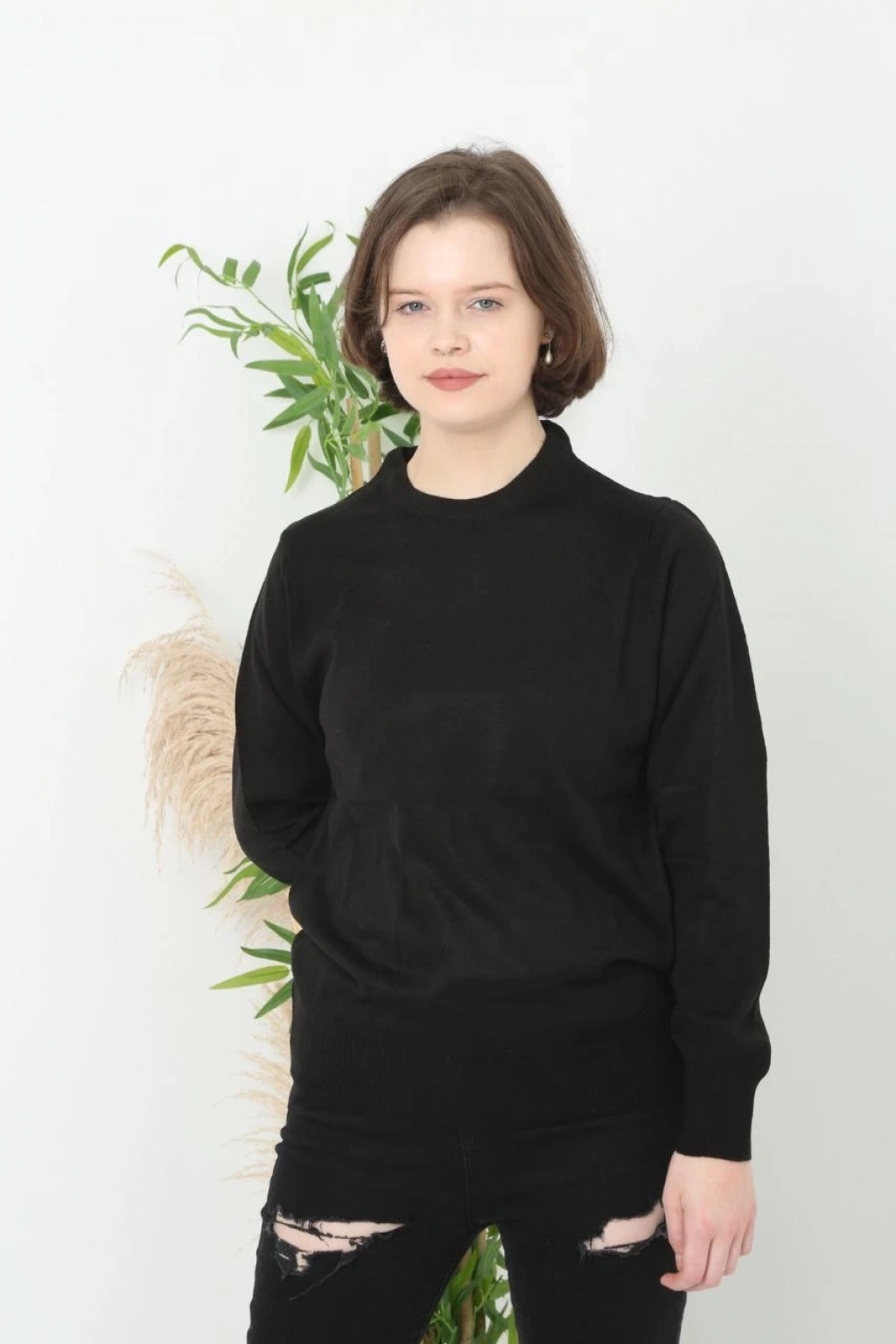 Kadın Yarım Boğaz Triko Kazak yumuşak dokulu Pamuklu ince Dokuma, uzun kollu Rahat Regular kalıp - Siyah