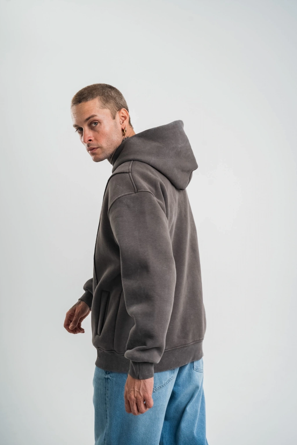 Samuray ZIP Fermuarlı Kapüşonlu SweatShirt- Siyah