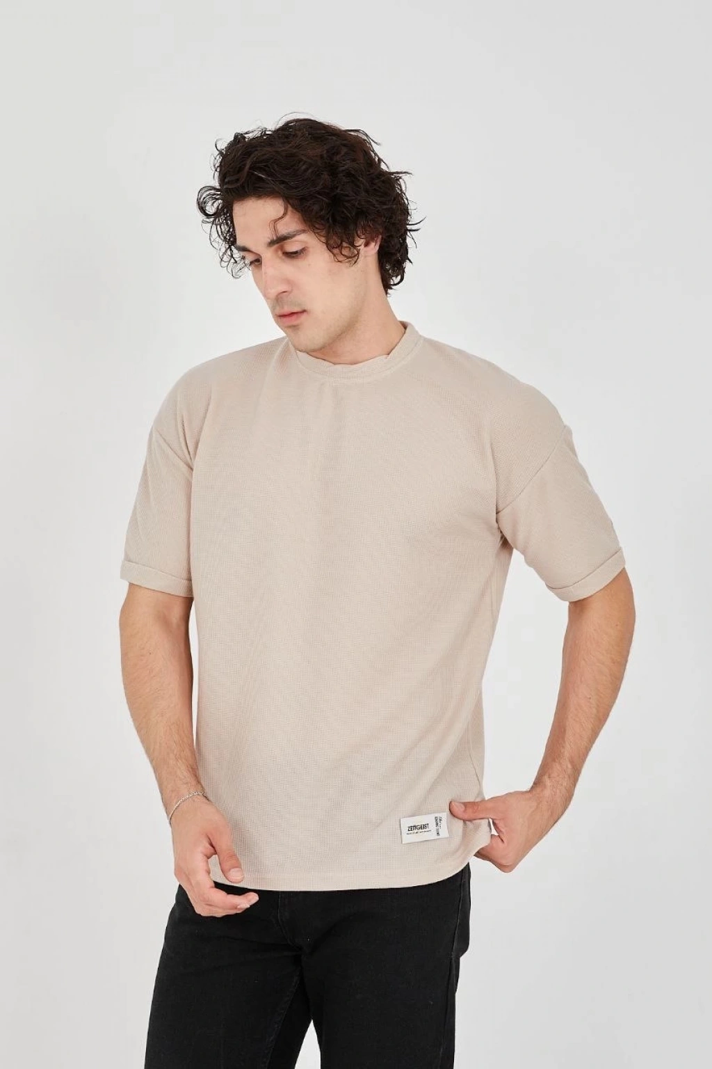 20/1 Penye Compack Ön Arka Ejder Baskılı Oversize Bisiklet Yaka T-shirt - Beyaz