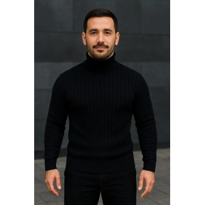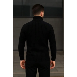 Erkek Yarım Boğaz Triko Kazak yumuşak dokulu Pamuklu ince Dokuma, uzun kollu Rahat Regular kalıp - Siyah
