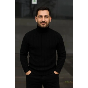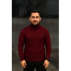 Erkek Fitilli Triko Kazak 2'li Set Bordo Siyah Regular Balıkcı Yaka Tam Boğazlı Triko Seti Modeli Kazak