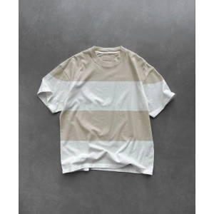 Unisex Bisiklet Yaka Parçalı T-Shirt - Bej