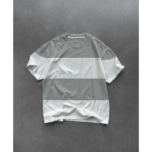 Unisex Bisiklet Yaka Parçalı T-Shirt - Gri