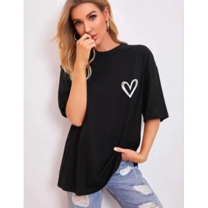 Kadın Bisiklet Yaka Baskılı Oversize T-Shirt - Siyah