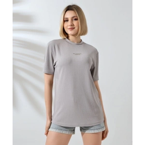 Unisex Bisiklet Yaka Baskılı Slim Fit T-Shirt - Boyalı Gri