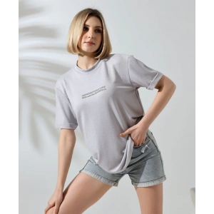 Kadın Bisiklet Yaka Baskılı Oversize T-Shirt - Beyaz
