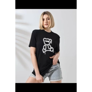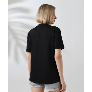Unisex Kadın Bisiklet Yaka Baskılı T-Shirt - Siyah