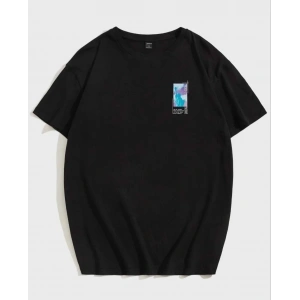 Unisex Baskılı Oversize T-Shirt - Siyah