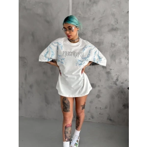 Unisex Baskılı Oversize T-Shirt - Beyaz